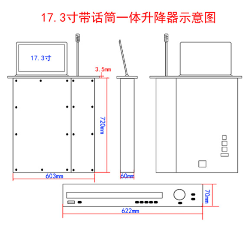 ●话筒升降器采用拥有专利的阶梯式开合门方式,大大提高了安全系数,从而保证话筒不会损坏。